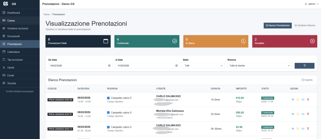 •- Prenotazione Risorse (Campi, Sale, ecc.)